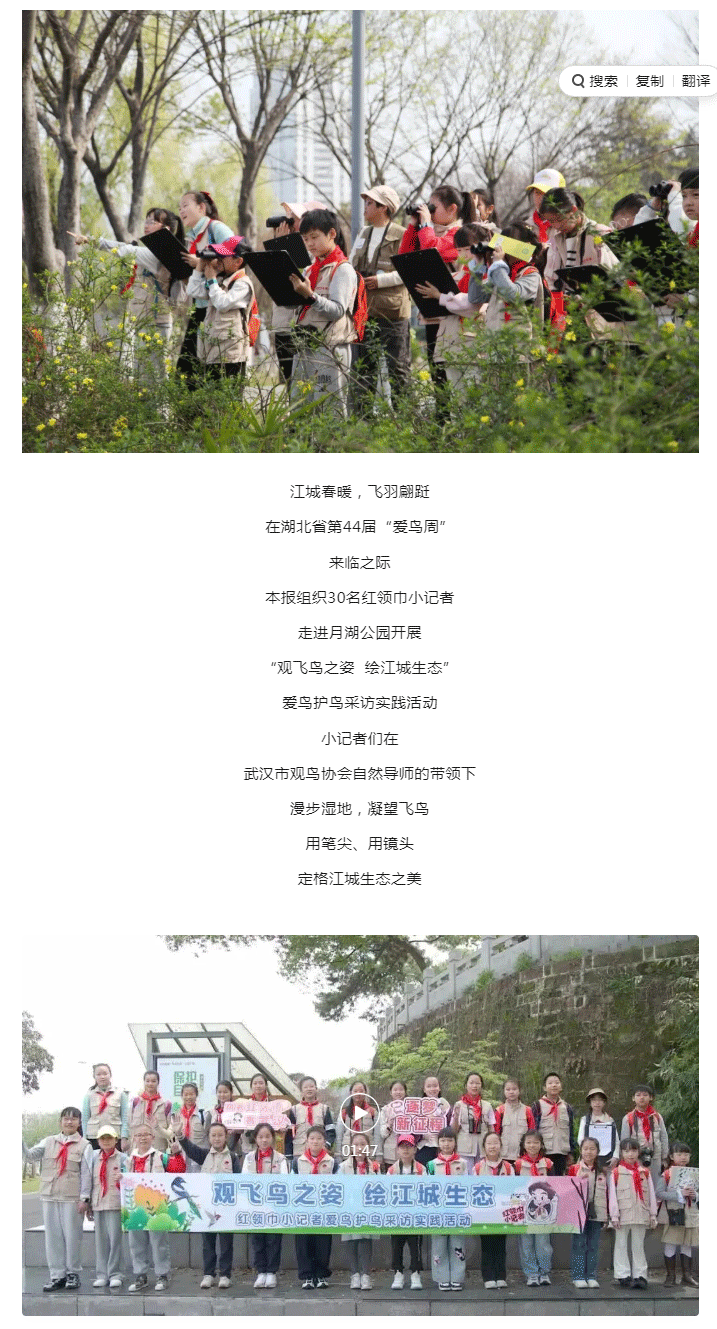 月湖公园藏着多少种“飞鸟朋友”?这群小记者知